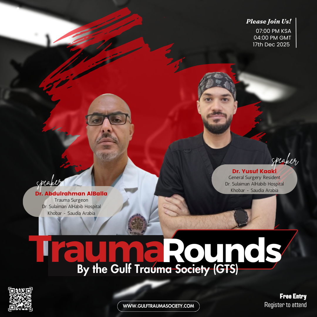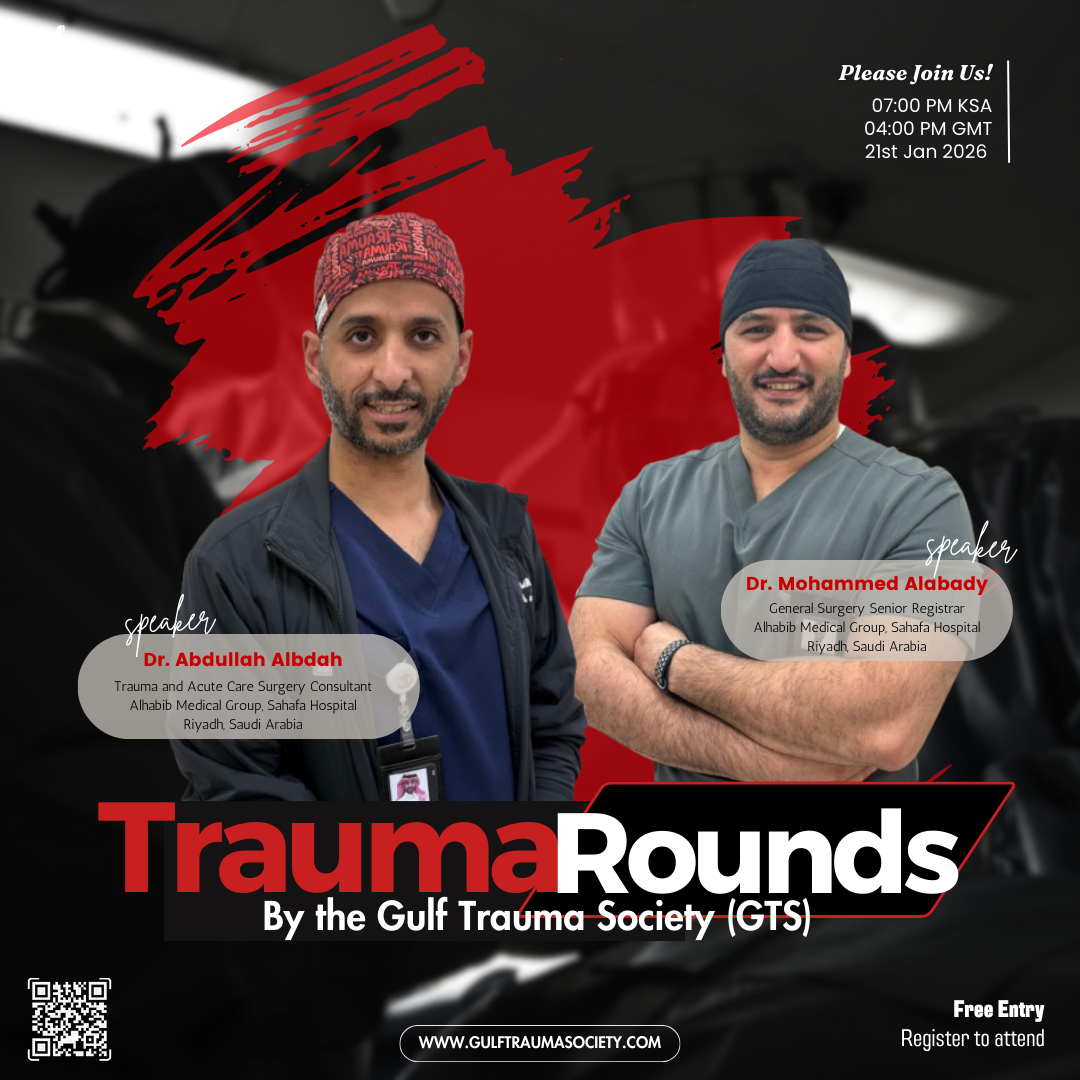 It all started on the inspiring day of the 9th Oman Surgical Update and 2nd Trauma conference, where a group of passionate trauma surgeons found themselves united by a common purpose and a shared vision. By this shared passion, the Gulf Trauma Society (GTS) was born. With great commitment and excellence, our mission is to create an empowering & supportive community that unites trauma surgeons and inspire young eager residents and interns. We envision GTS as a flourishing land for knowledge & skills which has a lasting impact in the field of Trauma surgery in the area.